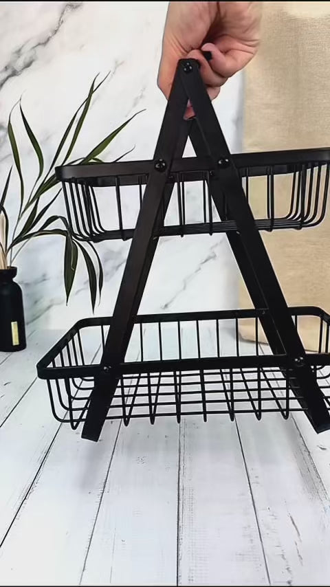 Elegí un diseño práctico y moderno para organizar tu cocina o comedor. Esta canasta metálica de 2 niveles mantiene frutas, verduras, pan o snacks perfectamente ordenados y accesibles, aportando un toque decorativo elegante.