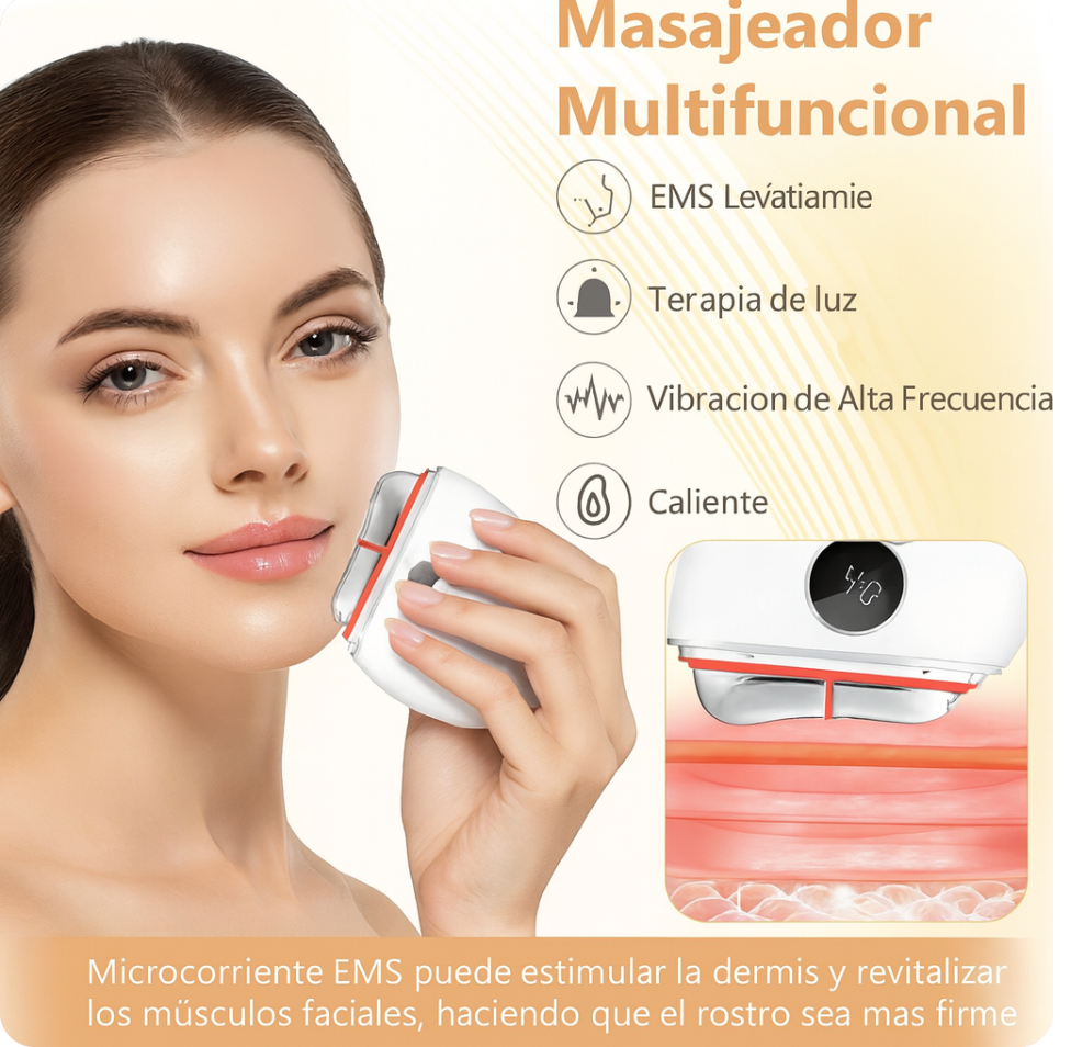 GUASHA CON RADIOFRECUENCIA - MASAJEADOR FACIAL CON LUZ LED Y VIBRACIÓN- 5 NIVELES DE CALOR Y 5 MODOS DE MASAJE