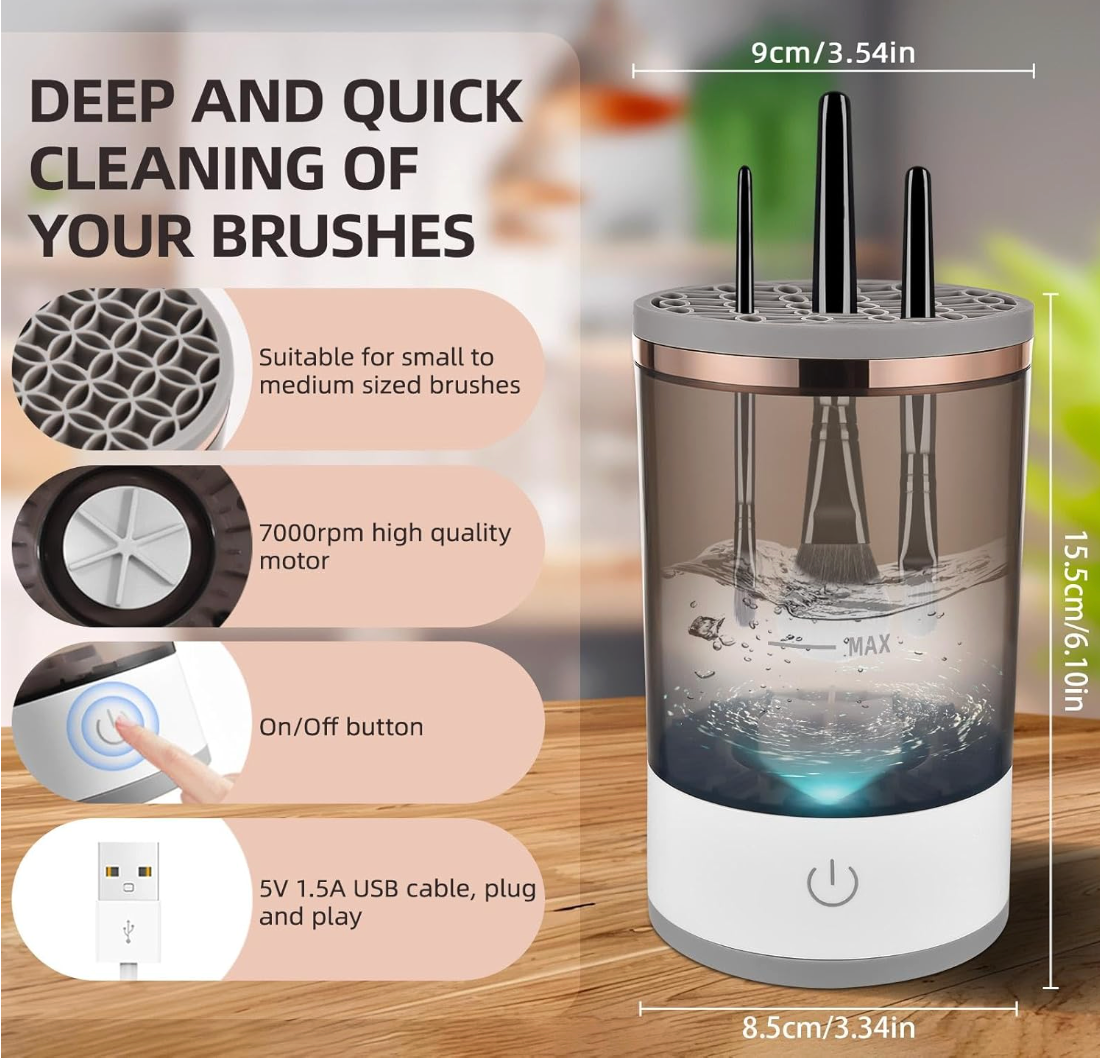 Ideal tanto para uso profesional como personal, este dispositivo ofrece una limpieza higiénica, rápida y sin esfuerzo, prolongando la vida útil de tus brochas y evitando la acumulación de bacterias en tu piel.