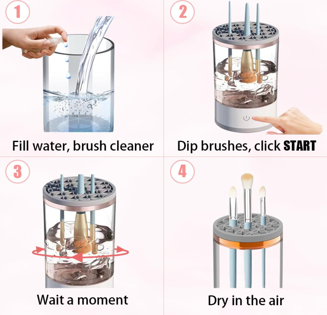 - Fácil de usar: Solo agregá agua y jabón, colocá la brocha o esponja y presioná el botón para iniciar la limpieza.