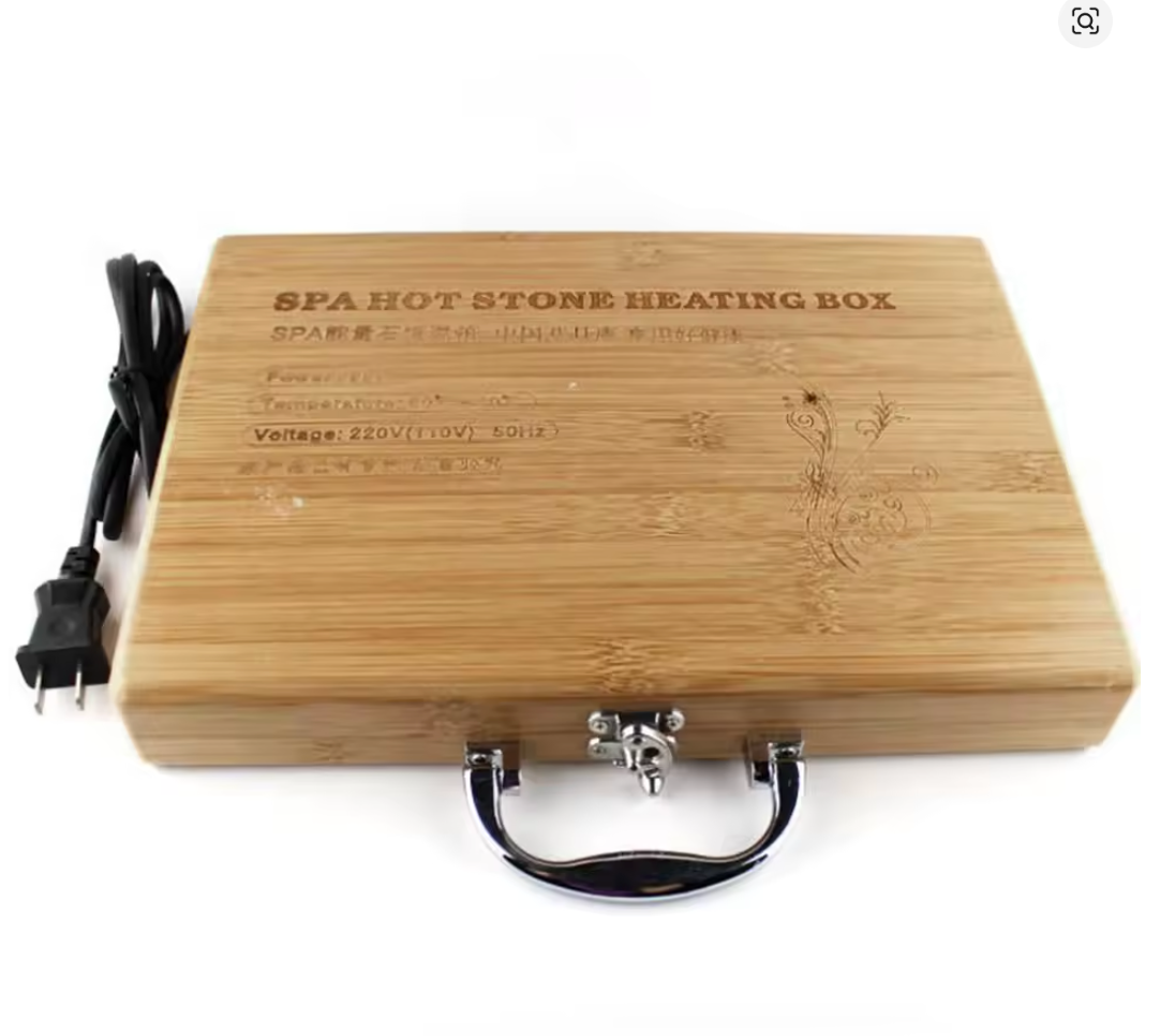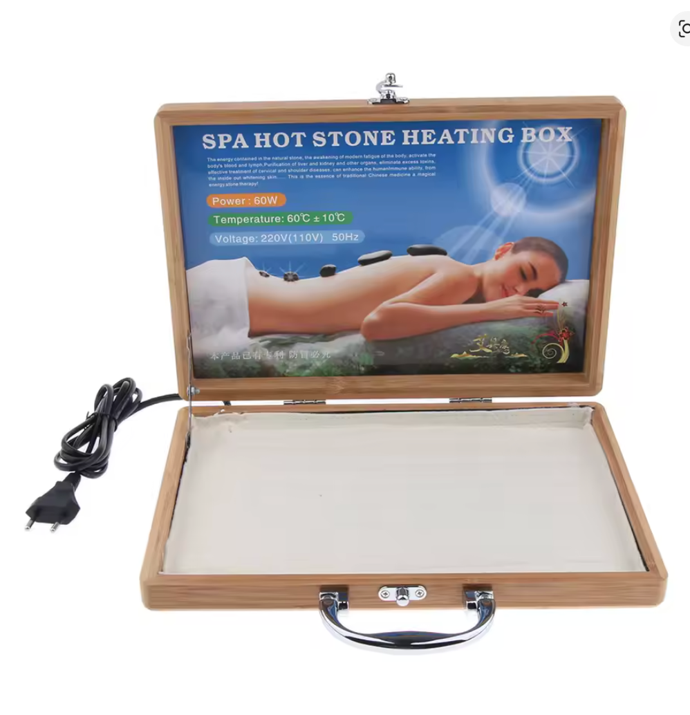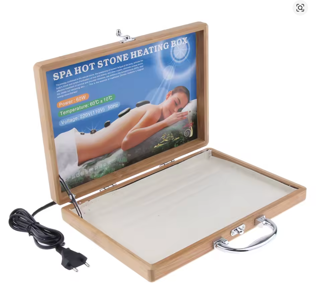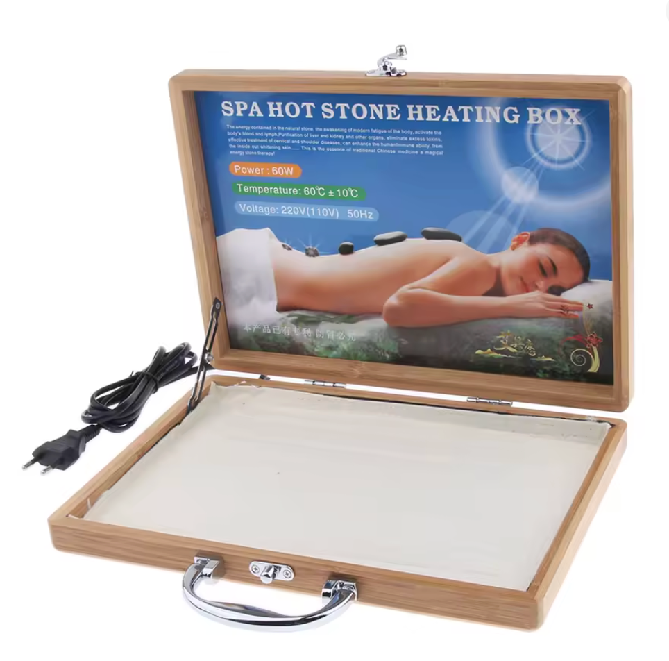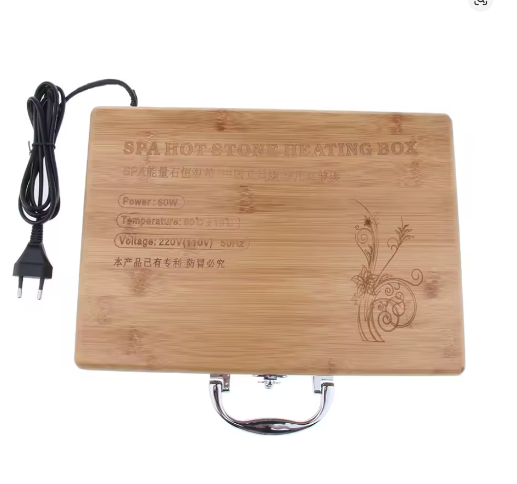 Llevá la experiencia de un spa profesional a tu casa o centro estético con esta caja calefactora de bambú con piedras de basalto incluidas.