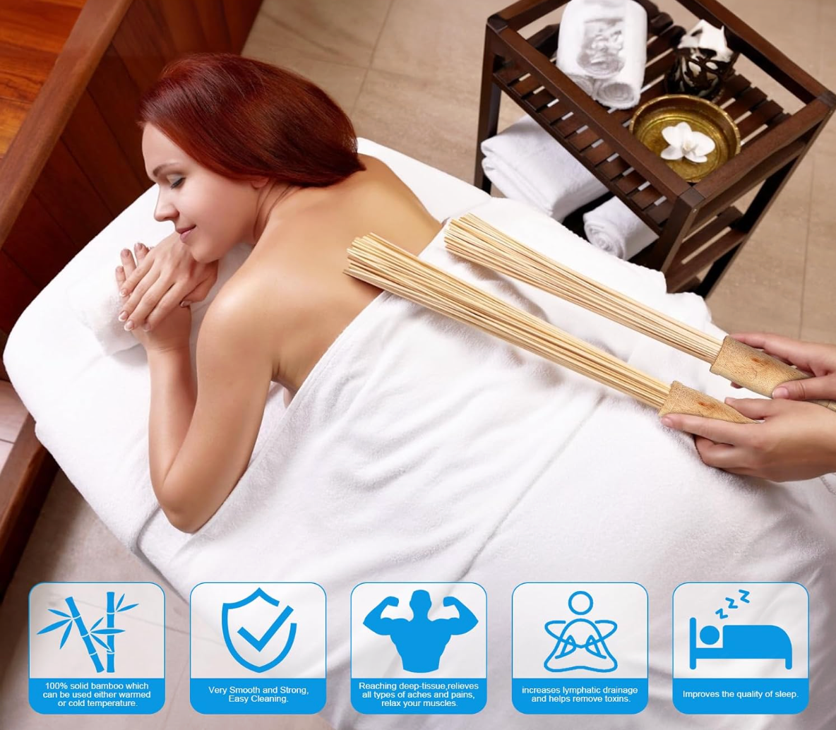 VARILLAS DE MASAJE DE BAMBÚ 2 PIEZAS – RELAJACIÓN MUSCULAR, CIRCULACIÓN Y BIENESTAR CORPORAL