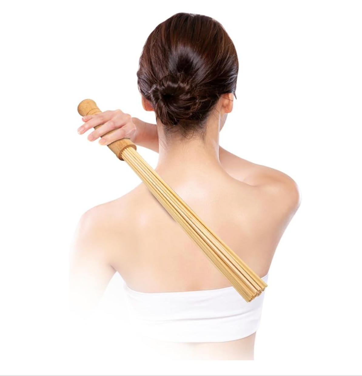 Este set de dos sticks de masaje en bambú natural está diseñado para proporcionar una terapia corporal sencilla y efectiva que alivia la tensión muscular y mejora la circulación sanguínea. Su forma ergonómica permite aplicarlo fácilmente sobre espalda, hombros, brazos, piernas y pies, ideal para relajar el cuerpo después del trabajo, del gimnasio o simplemente para tu rutina de cuidado personal.